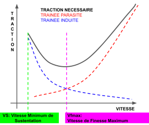 - La distance est maximum pour la vitesse de trainée minimum (finesse maximum)